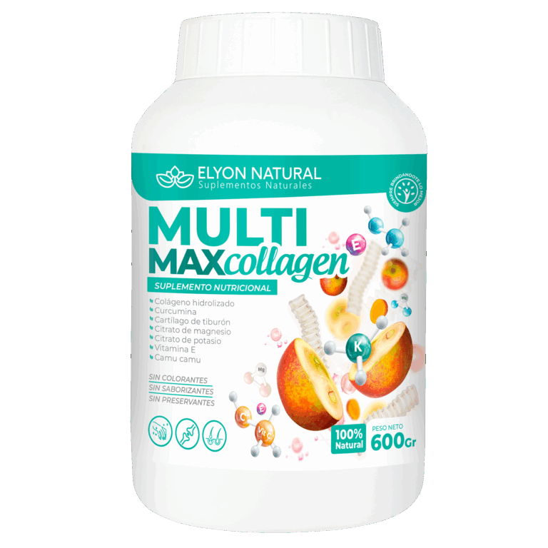 Multi Collagen – Colágeno Hidrolizado con Curcumina, Cartílago de Tiburón, Magnesio, Potasio, Vitamina E y Camu Camu – Frasco 600g | Elyon Natural