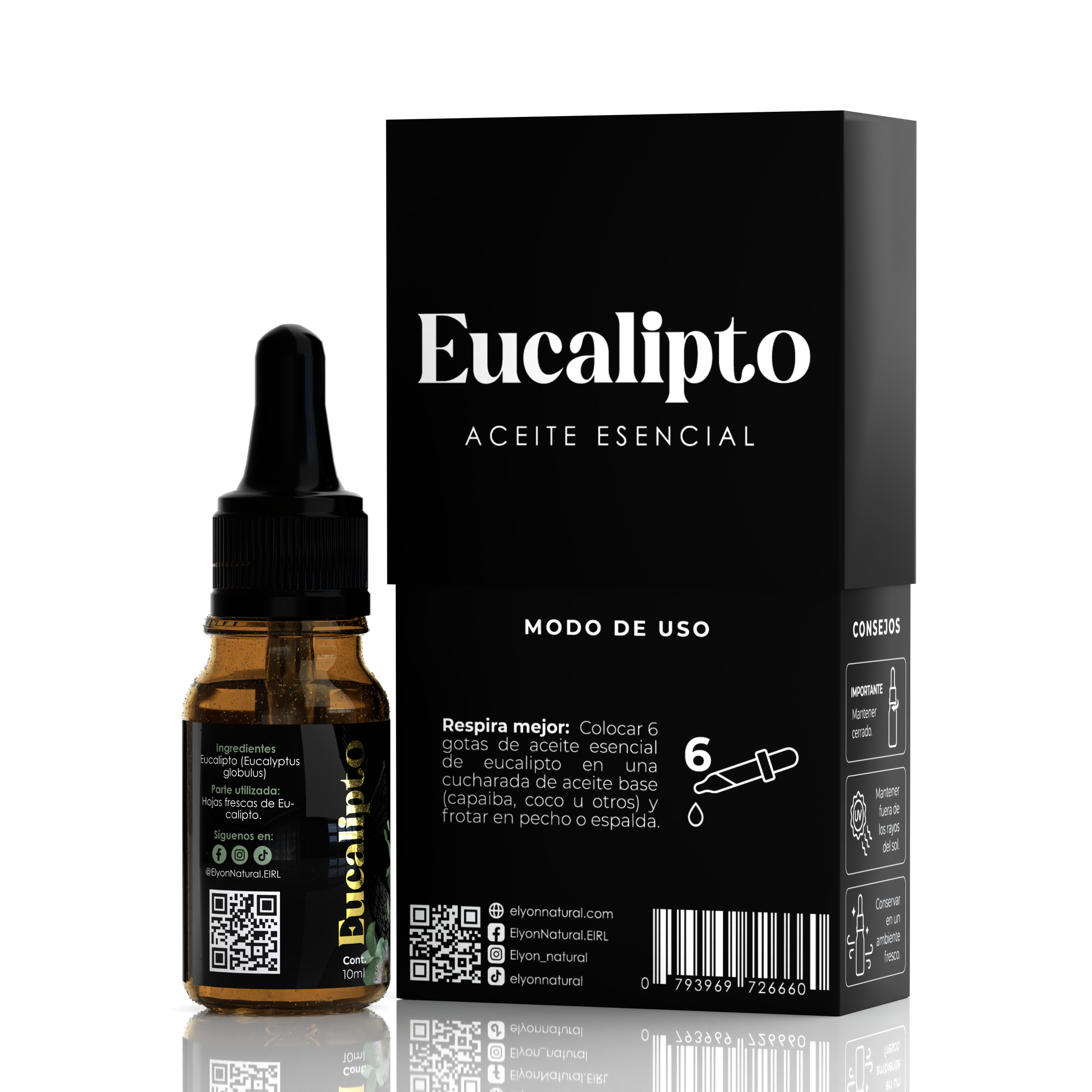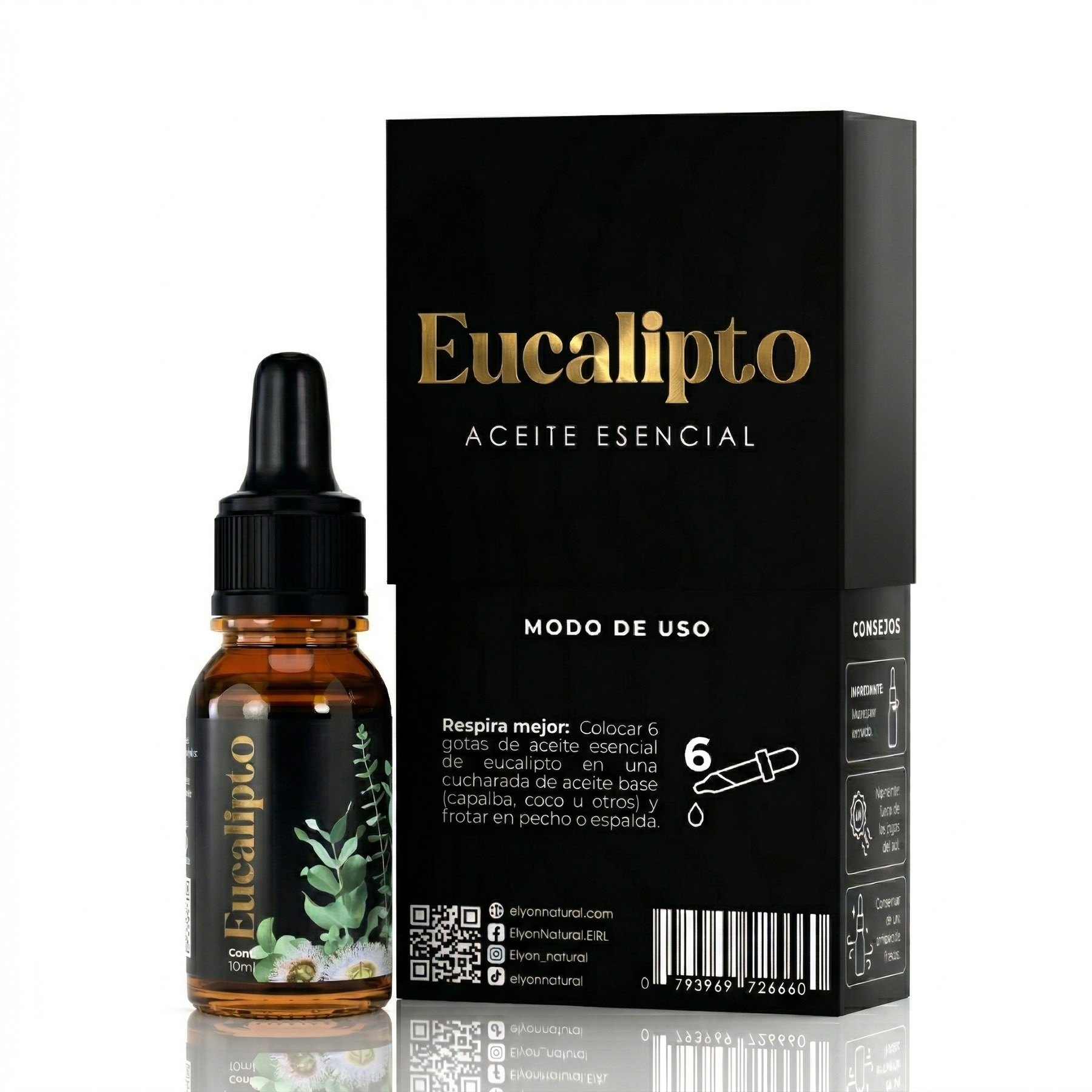 El Aceite Esencial de Eucalipto 100% Puro de 10ml de Elyon Natural es la solución natural más efectiva para despejar las vías respiratorias. Rico en Cineol, es indispensable para facilitar la respiración, aliviar la tos y purificar el ambiente, especialmente en épocas de resfriados.