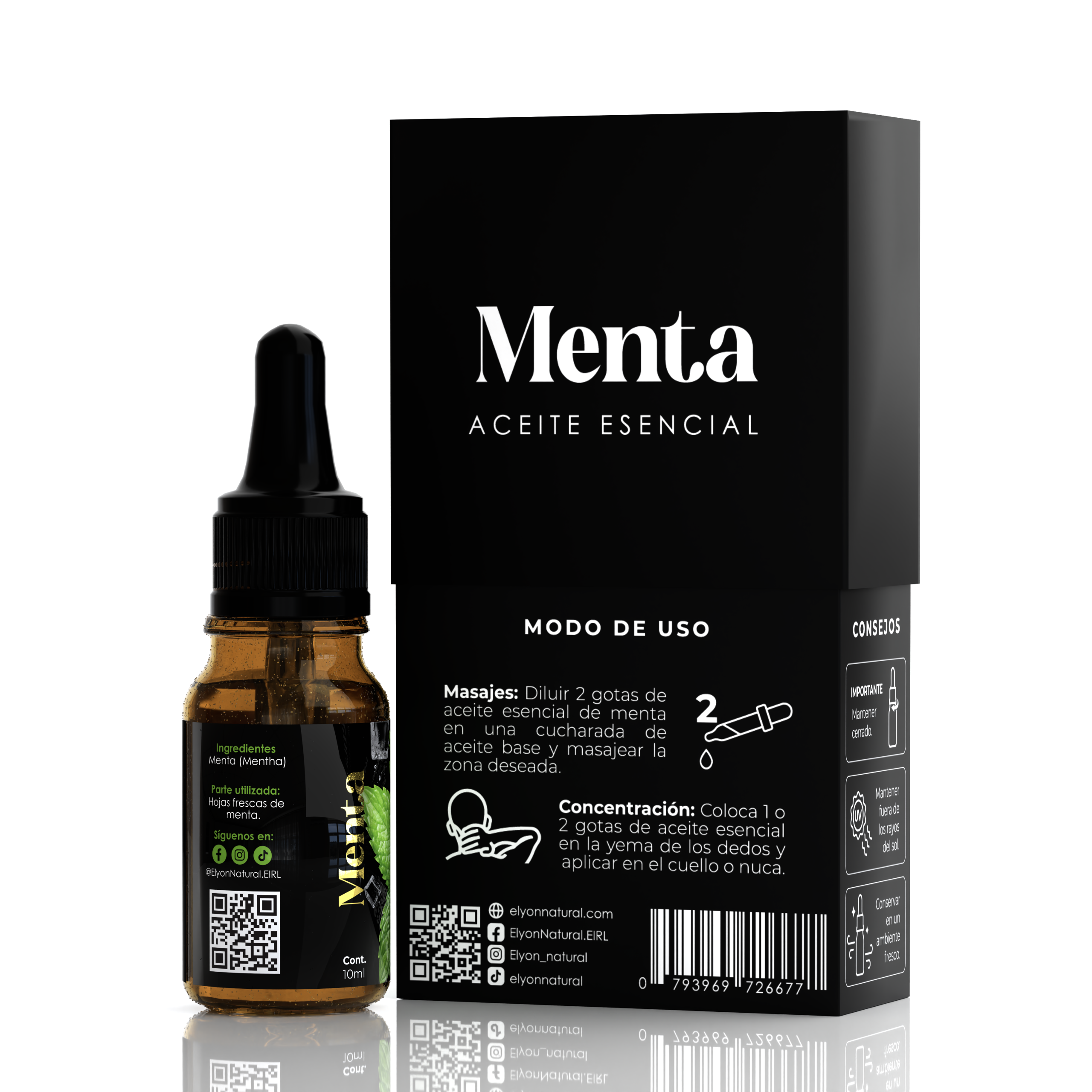 El Aceite Esencial de Menta 100% Puro de 10ml es un concentrado vigorizante de mentol. Su aroma intenso y refrescante es ideal para un despertar instantáneo, para aliviar dolores de cabeza y migrañas, y para mejorar significativamente el enfoque mental y la respiración.