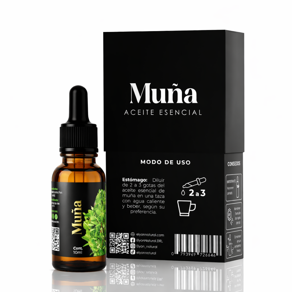 El Aceite Esencial de Muña 100% Puro de 10mL, extraído de la hierba andina Minthostachys mollis, es un poderoso tónico digestivo y respiratorio. Es el remedio ancestral que necesitas para aliviar rápidamente las molestias estomacales y mejorar la respiración.